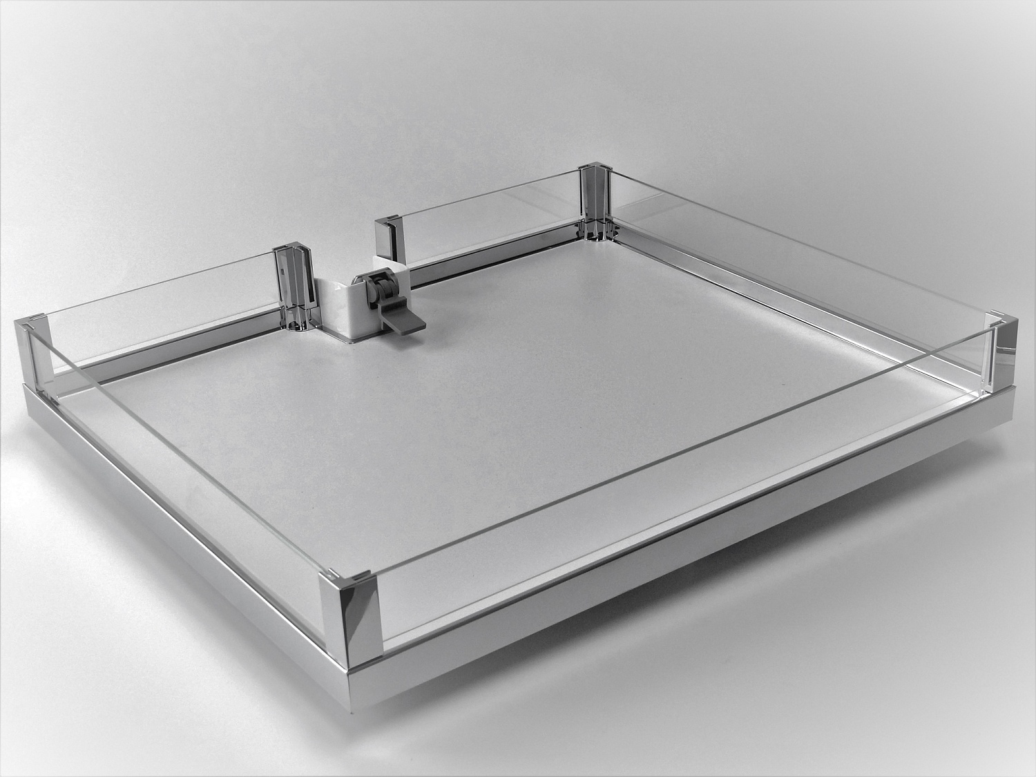 Комплект полок 5шт + 1 ручка, со стеклянными боковинами, Конвой Лавидо 450 мм, Арена ВАРИО, цвет ХРОМ, цвет дна Серый, антислип