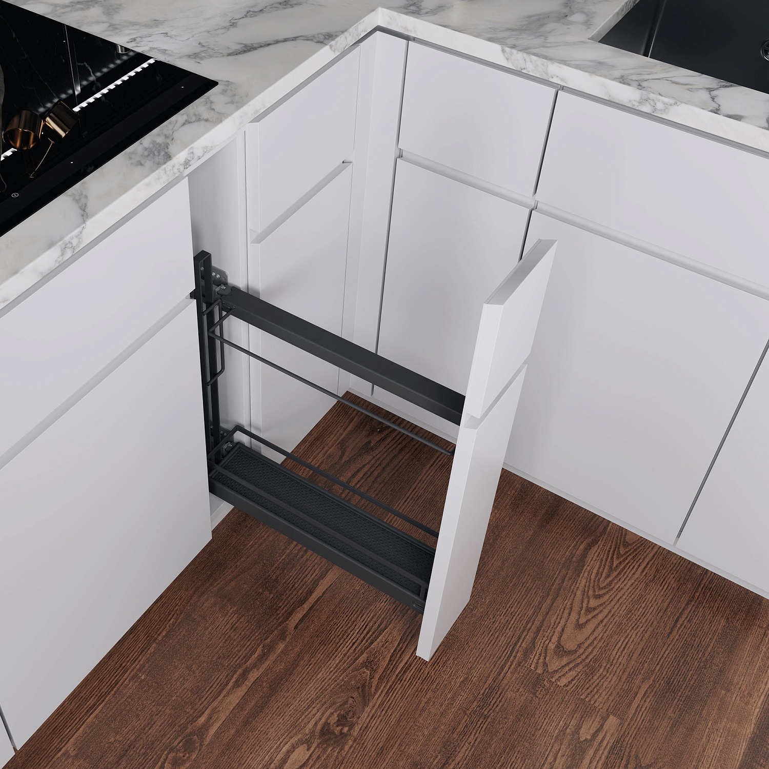 Бутылочница для противней №15 H 542 фасад 150 мм 3D