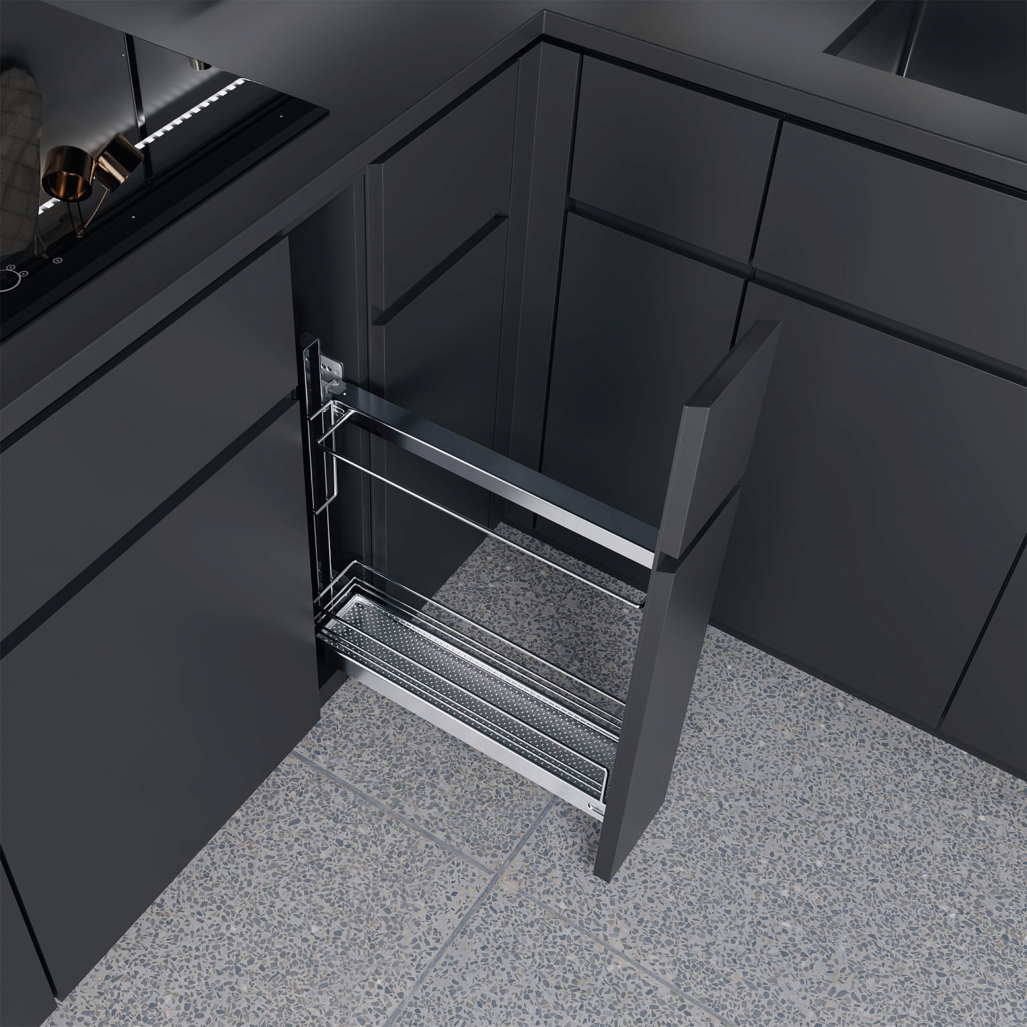 Бутылочница для противней №15 H 542 фасад 150 мм 3D