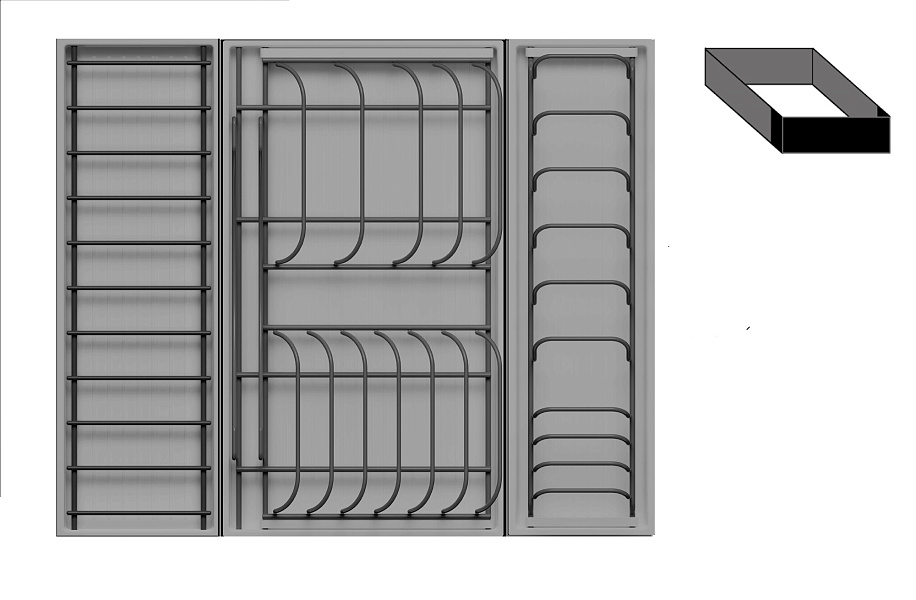Модель — 1 большой модуль для посуды + 1 малый модуль для посуды + 1 малый модуль с решеткой
