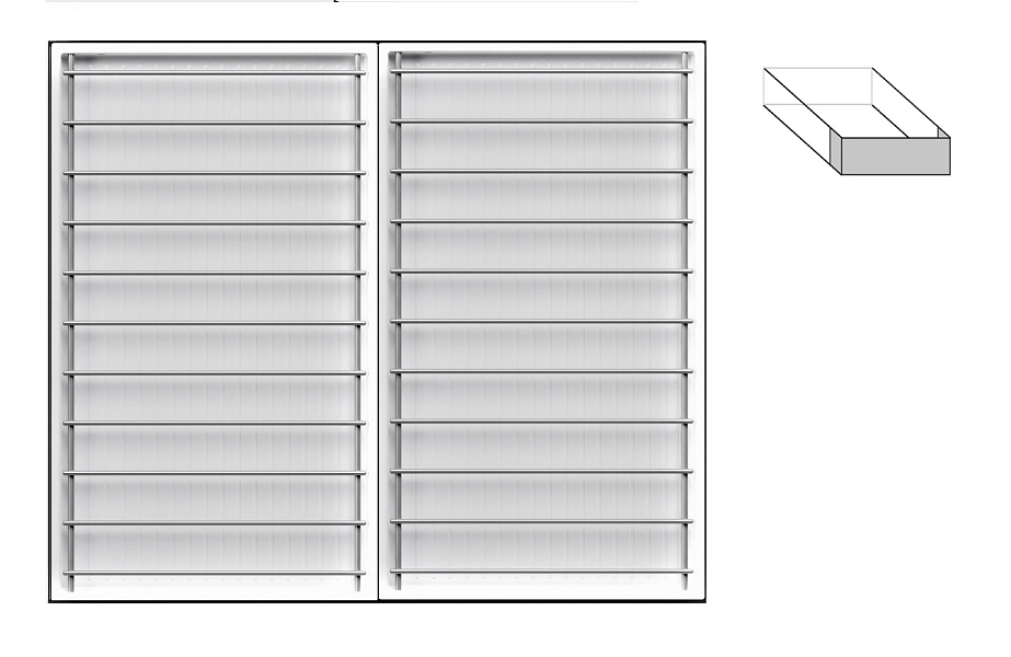 - 1 большой модуль для посуды + 1 большой модуль с решеткой + 1 малый модуль для посуды + модуль для столовых приборов