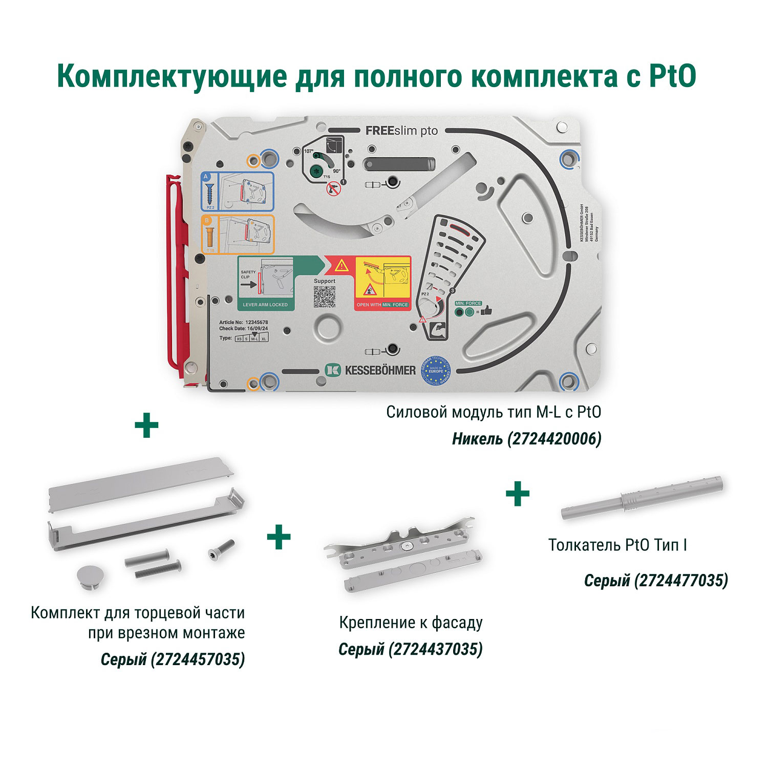 Силовой модуль тип M-L Pto левый и правый, к подъемнику ФриСлим Флап, H 225-650, 2 шт + 4 установочных штифта, 8 шурупов 4х20 мм, цвет НИКЕЛЬ (2724420006)