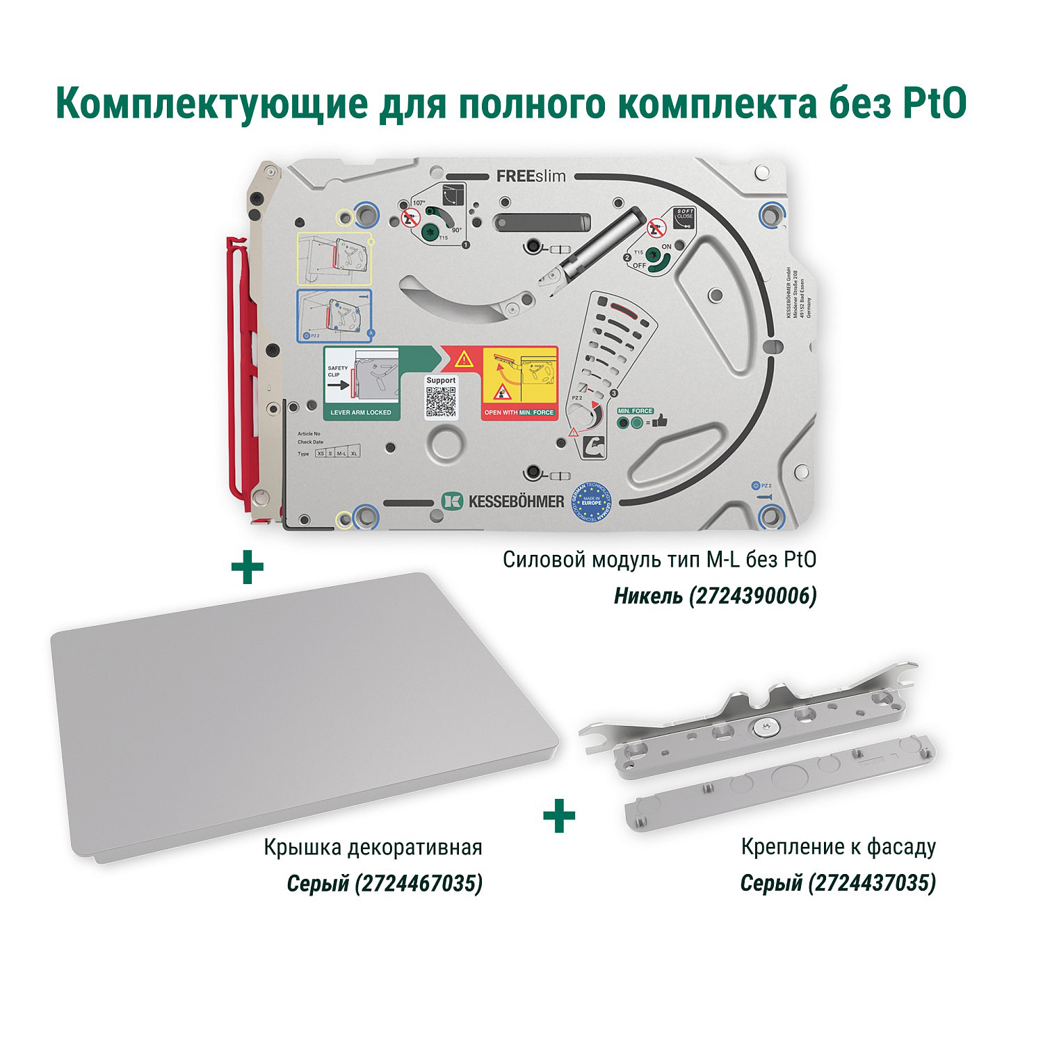 Силовой модуль тип M-L левый и правый, к подъемнику ФриСлим Флап, H 225-650, 2 шт + 4 установочных штифта, 8 шурупов 4х20 мм, цвет НИКЕЛЬ (2724390006)