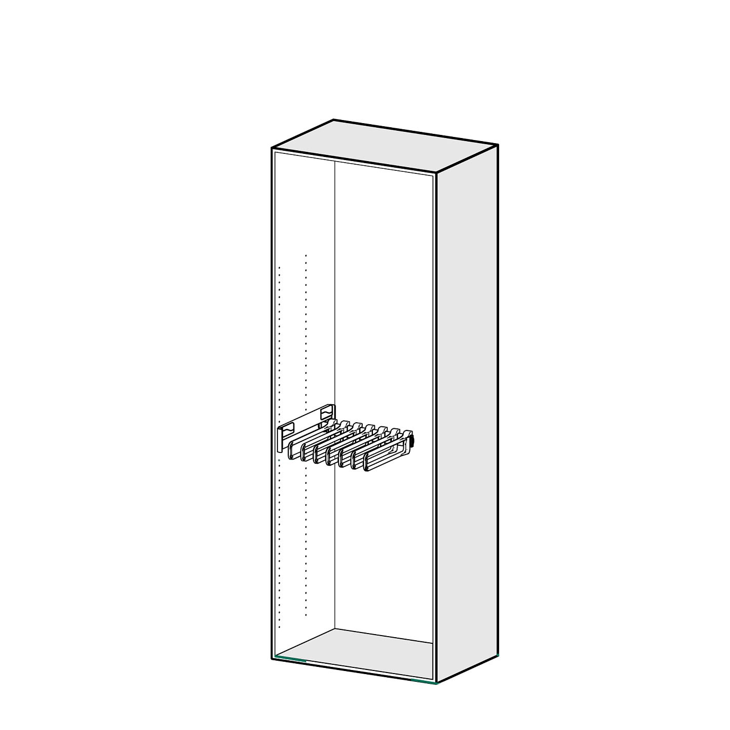 Держатель оснащен полностью скрытой направляющей выдвижения, тем самым обеспечивая бережное хранение одежды.