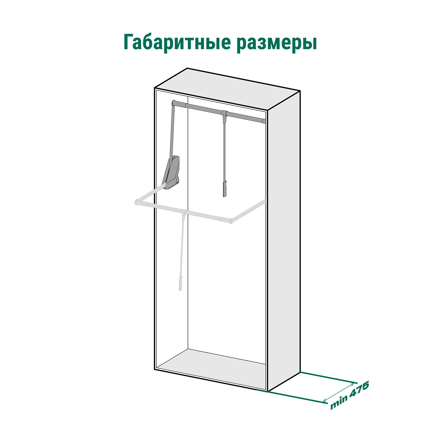 Общая нагрузка на механизм включает в себя: полезная нагрузка + собственный вес механизма 2 кг (максимальный вес ручки-тяги и штанги для одежды).